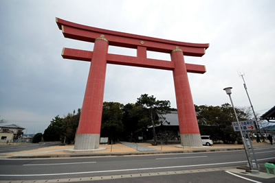 漢字で書くと「自凝島神社」。縁結びで有名らしく参拝者は女性が多い。ちなみにここの鳥居は日本三大鳥居に入るらしい。(他は京都:平安神宮、広島:厳島神社)